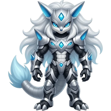 Shiny Cool Futuristic Smooth Zeraora-Lombax-Sergal-Zangoose-Cyclizar-Genesect-Pokémon, full body emoji