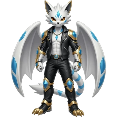Cool Edgy Shiny Futuristic Ethereal Legendary Zeraora-Digimon-Lombax-Renamon-hybrid full body emoji