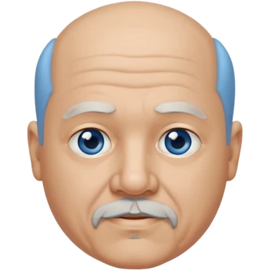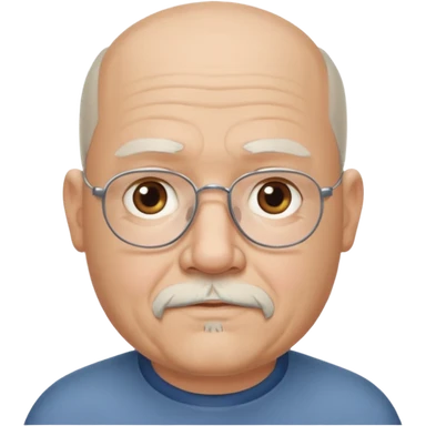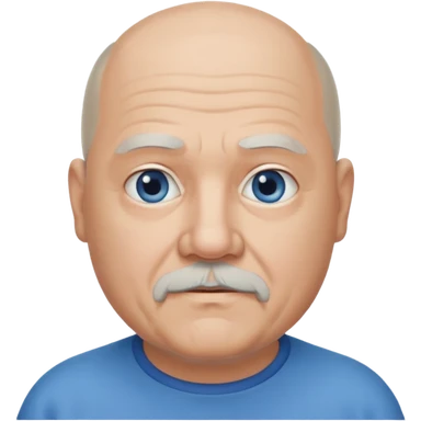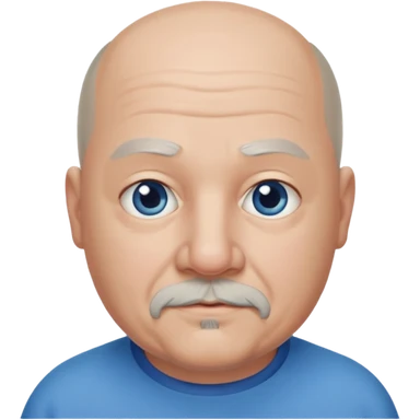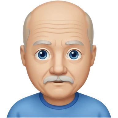 75, goatee, bald, grey side hair, chubby, blue eyes emoji
