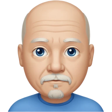 75, goatee, bald, grey side hair, chubby, blue eyes, goatee emoji