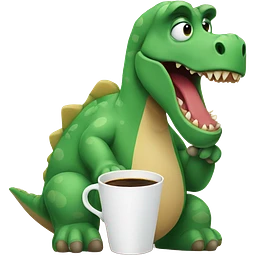 Cool guy with sunglasses drinking coffee on a dinosaur emoji | AI Emoji Generator