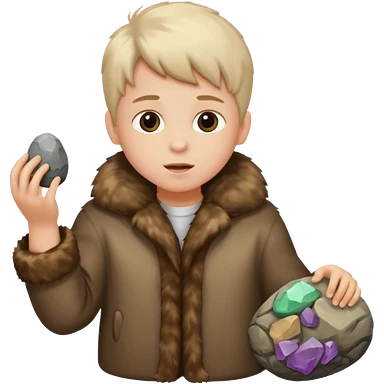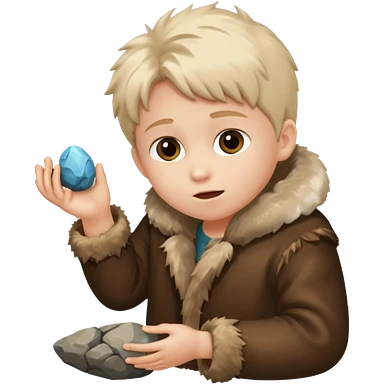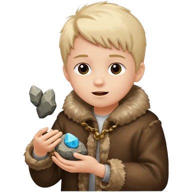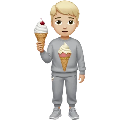 A kid with blonde hair and ice cream hair, Grey ESSENTIALS sweater, gray Nike shoes, Grey pants and he is white. emoji