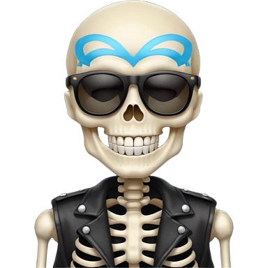 cool skeleton smiling like a rockstar with sunglases emoji | AI Emoji Generator