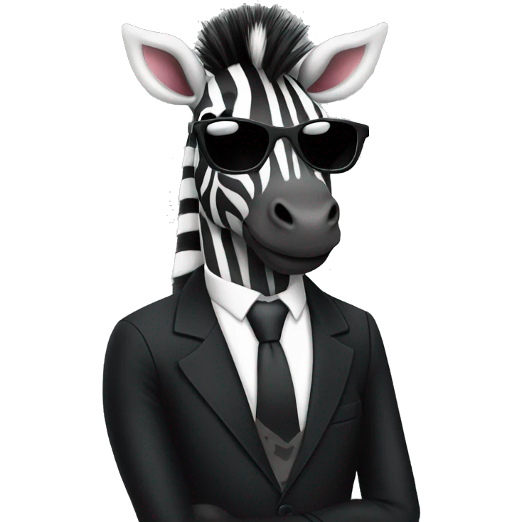 cool zebra in a black suit with sunglasses, looking sideways emoji | AI Emoji Generator