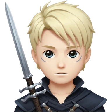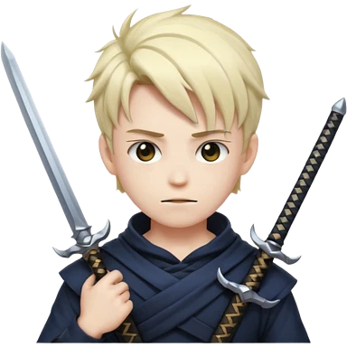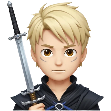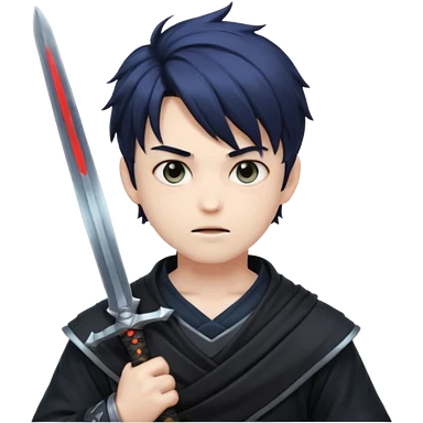 Way cooler with aura very aura and shadow on his face and adult face body Create me an anime character boy emoji looking very cool with swords on his hand emoji