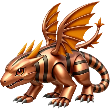 Copper-Striped Burnished Warm-hued Metallic Pokémon-Fakémon-Digimon-Creature, (full body) emoji