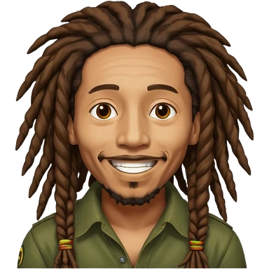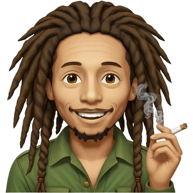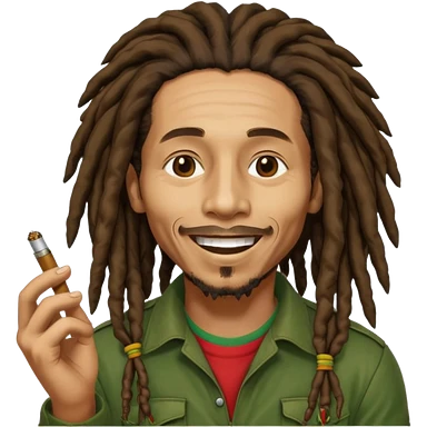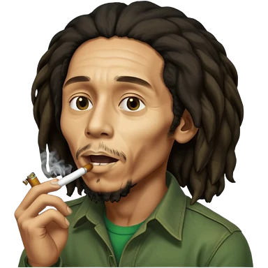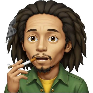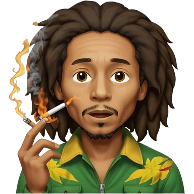 Bob Marley version cartoon fumant un jour de beuh dans la bouche avec beaucoup de fumé et un effet vraiment voyant sur son visage qu’il n’est pas dans son état normal emoji