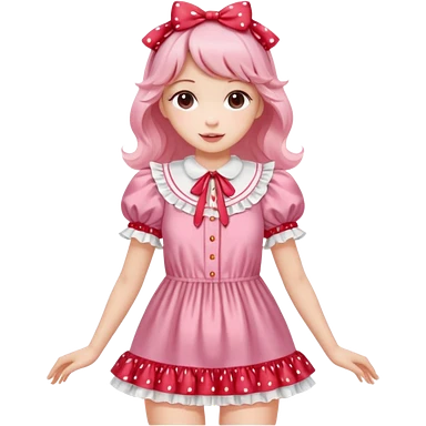 coquette strawberry babydoll blouse with ruffle sleeves and bottom, no human please emoji