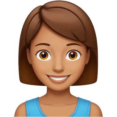 Create a teen girl wearing a light pink tank top. She will have long brunette hair, tan skin, pink lips, and grey-green eyes. She has long eyelashes. emoji