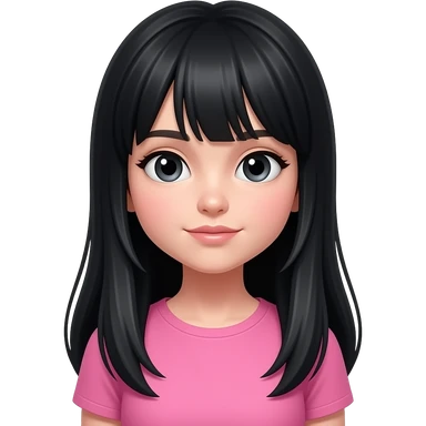 coquette Girl with long dark brown hair and bangs and black glasses pale skin pink long sleeve shirt emoji
