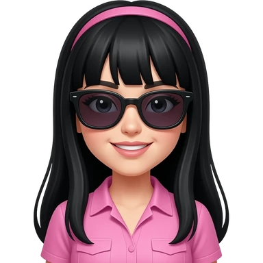 coquete introvert pink girl, with black long hair and sunglasses emoji