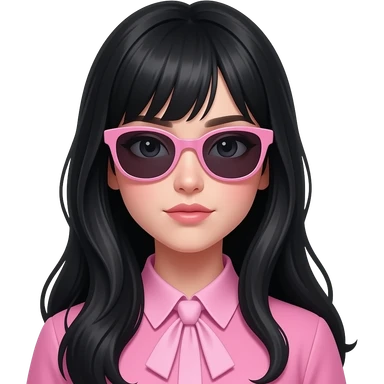 coquete introvert pink girl, with black long hair and sunglasses no glass emoji