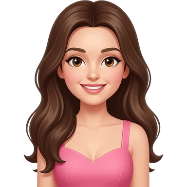apple style emoji of a coquette girl with midi dark brown slightly wavy hair, bright skin, greenish hazel eyes, small cute lips, charming and playful expression emoji