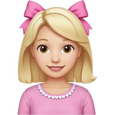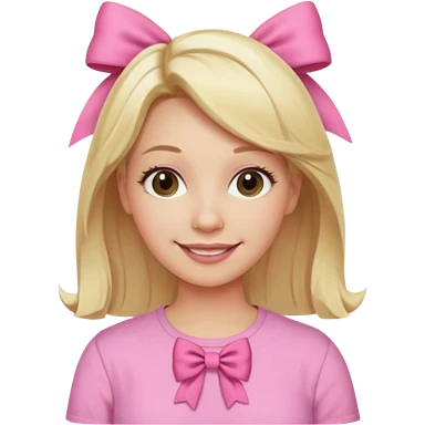 A mom with blonde hair and pink shirt coquett aesthetic style like bows and pink emoji