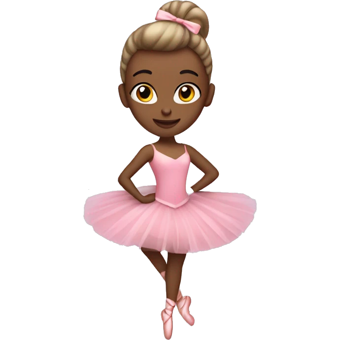 A ballerina dancing with point shoes and in a white tutu with a ribbon on her waist, she has a slick bun and a great posture emoji