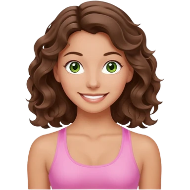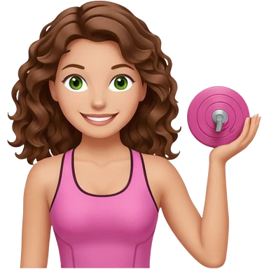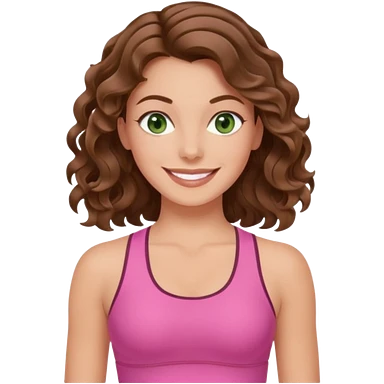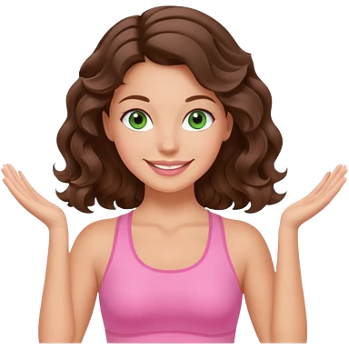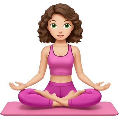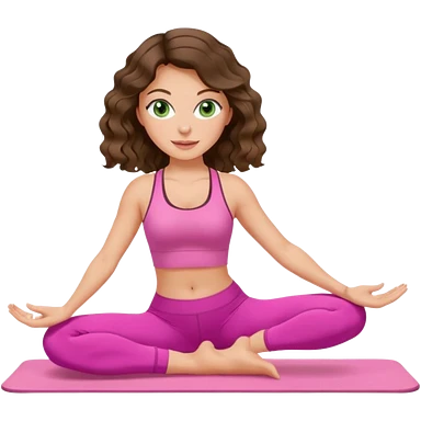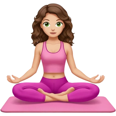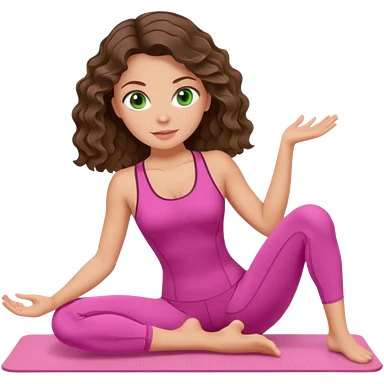 White, green-eyed, brunette cute feminine lady emoji with wavy hair doing pilates wearing pink pilates fit emoji