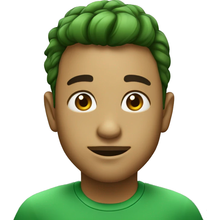 Emoji masculino em estilo 3D / cartoon realista, com pele morena clara, cabelos pretos bem penteados com gel, fios alinhados e com brilho, olhos pretos expressivos, sobrancelhas bem definidas, rosto jovem, expressão simpática e confiante, traços suaves e harmoniosos, sem barba emoji