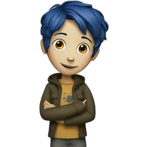 Coraline Jones • “A brave young girl with short blue hair, wearing a yellow raincoat, jeans, and rain boots, holding a black cat, with a curious and adventurous expression.” emoji