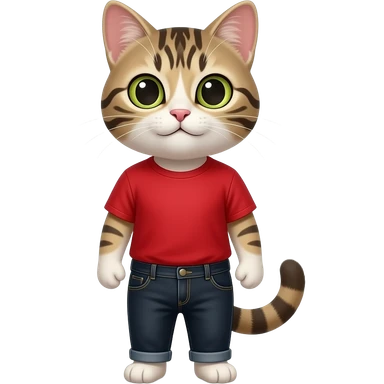 Un gato con camiseta roja y pantalón vaquero negro emoji