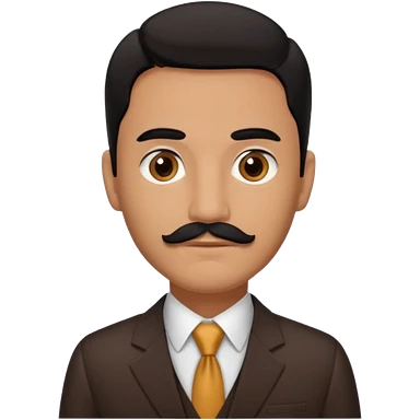 Jorge Palomino Y Cañedo with brown eyes, black hair and thin mustache, dark brown suit emoji