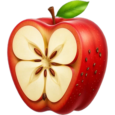 a partially eaten apple showing the core with a couple of leaves emoji