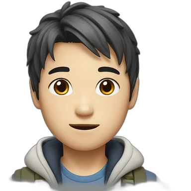 Jeune coréen au cheveux noir mi long avec lunettes emoji