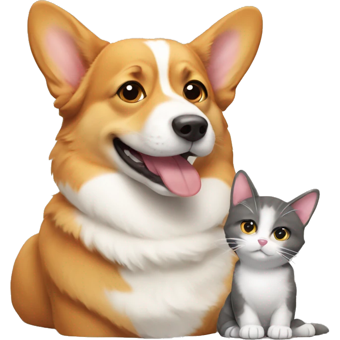 corgi is very happy with the cat, but the cat is afraid of it emoji