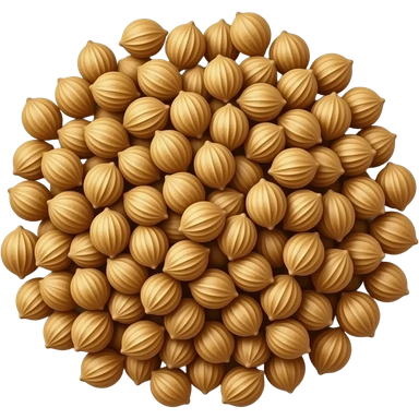 small scatter of round coriander seeds, beige to light brown, dry ribbed texture, subtle earthy tones, slightly ridged, varied size, whole natural spice, soft lighting, subtle shadows, emoji scale, transparent background emoji