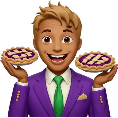 Faça uma pessoa com cabelo preto pouco bagunçado e pouco grande com cara de coringa emoji