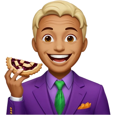 Faça uma pessoa com cabelo preto e pouco grande com cara de coringa emoji