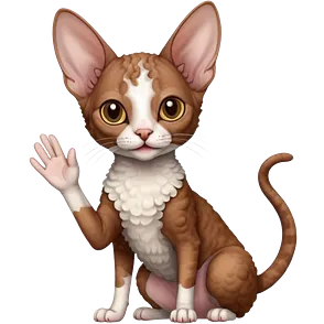 brown colored cornish rex cat waving emoji