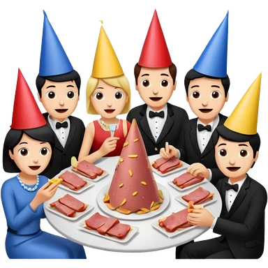 corporate executives enjoying wine Party at a french SPAM meat cafe LANDSCAPE emoji | AI Emoji Generator