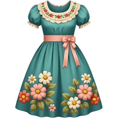 Cottagecore style ultra realistic highly detailed with vintage material, cottagecore style floral dress. No human figures, no emoji icons, no emoji faces. Isolated, dress emoji