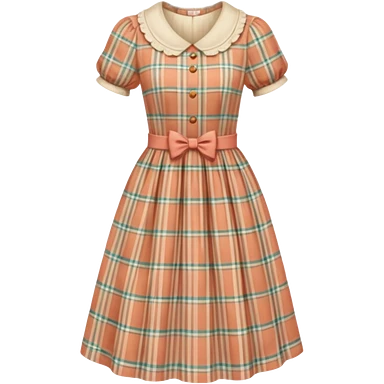 Cottagecore style ultra realistic highly detailed with vintage material, cottagecore soft colored plaid dress. No human figures, no emoji icons, no emoji faces. Isolated, dress emoji