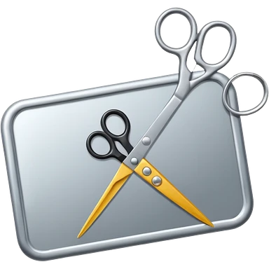 un restangulo con el simbolo de reproducir en el medio y una tijera a un lado emoji