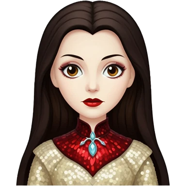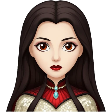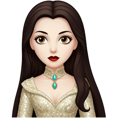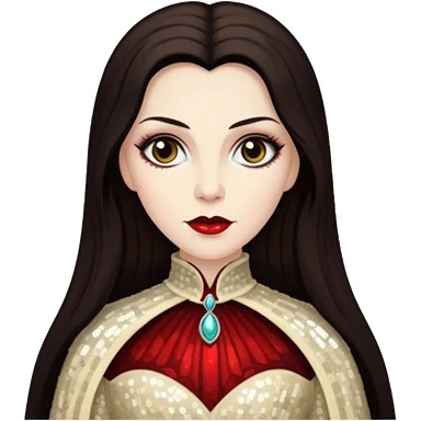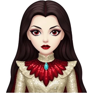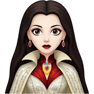 Countess Dracula with long dark brown hair, ivory sequin outfit emoji