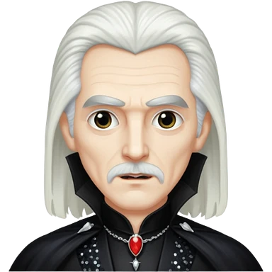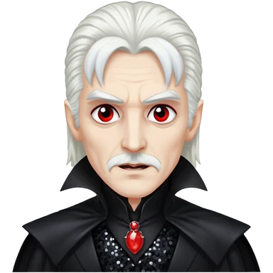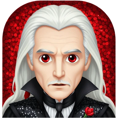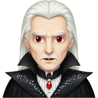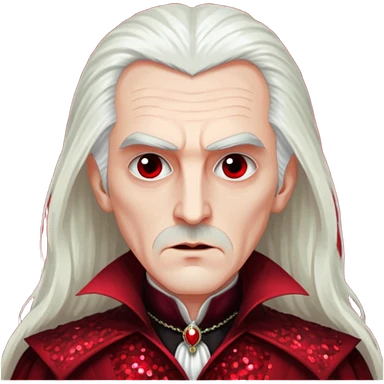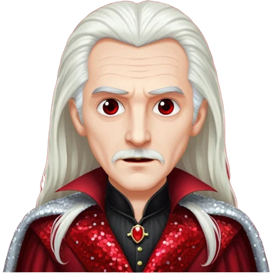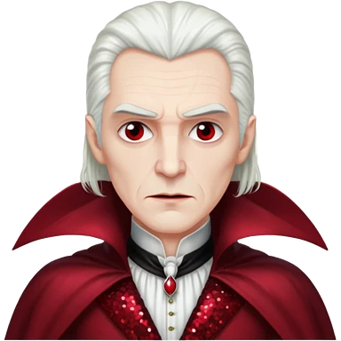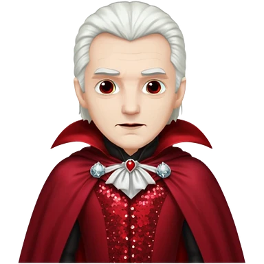 Count Dracula with long white hair, dark red sequin outfit emoji