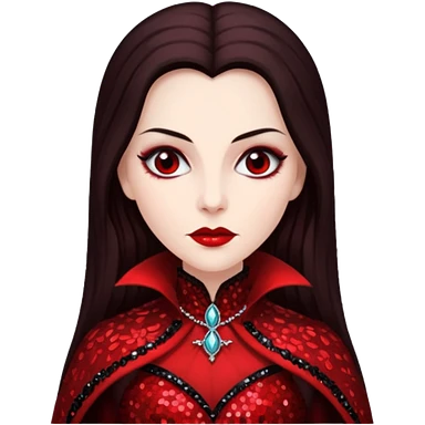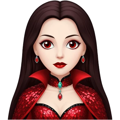 Countess Dracula with long dark brown hair, red sequin outfit emoji