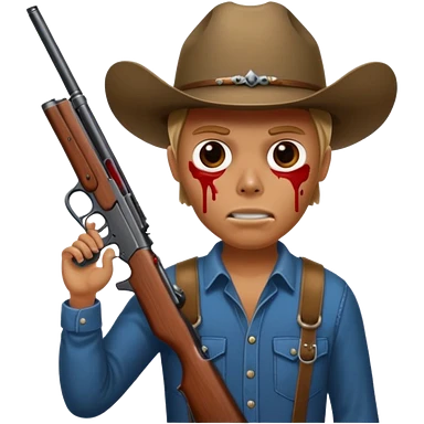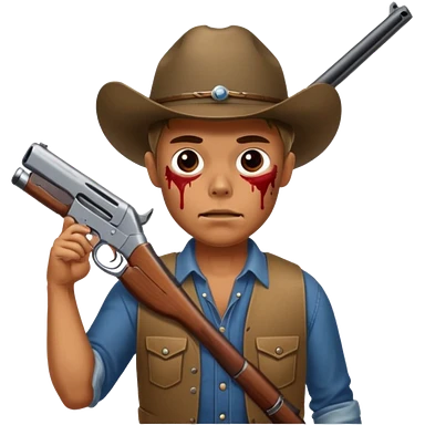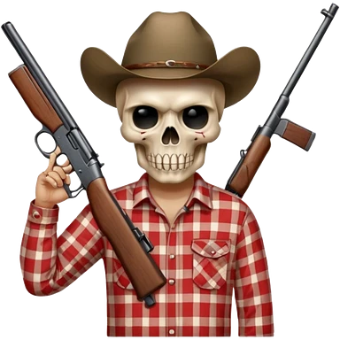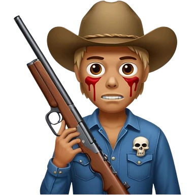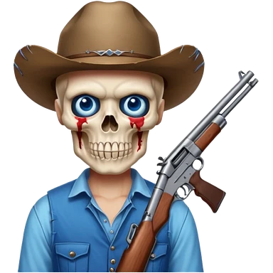 Country hick with a shotgun. From the chest to. In the style of your bleeding skull art emoji