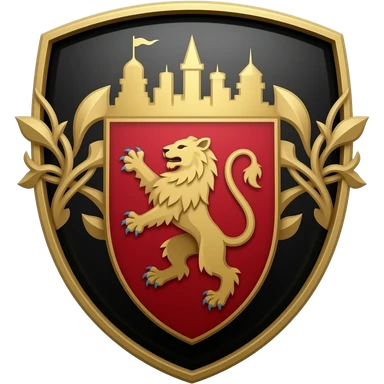 Crest, black, red gold skin city country club with a lion in the middle emoji