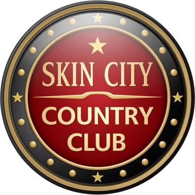 skin city country club with a line in the middle red black gold crest emoji