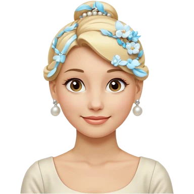 Blonde Women with Bun, Elegant Lady – blonde hair in neat low bun, pearl earrings, gentle smile., half body emoji