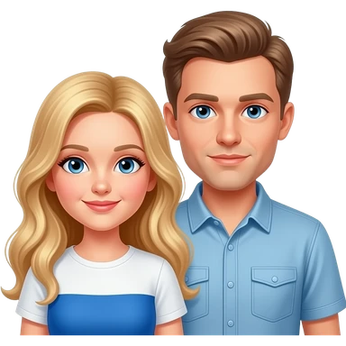 Couple, Brown hair man with goatee and grey eyes and blonde woman with beautiful brown eyes emoji