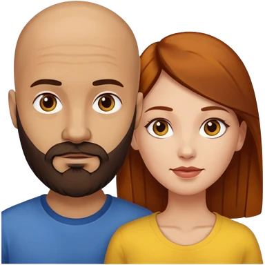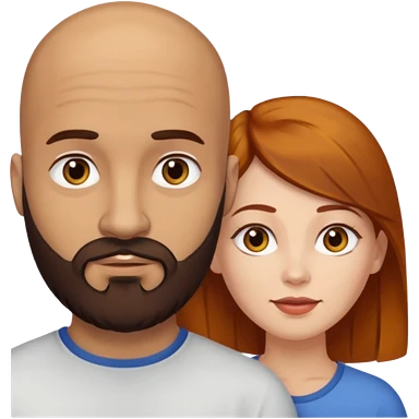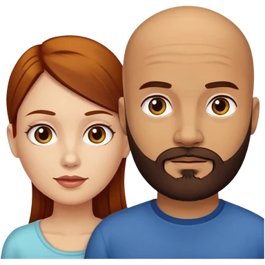 Couple. A bald man with dark brown beard and a girl with light skin dark yellow brown auburn hair. emoji