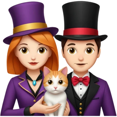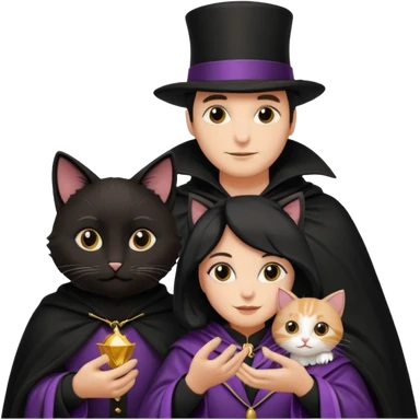 magician couple and their pet cat emoji