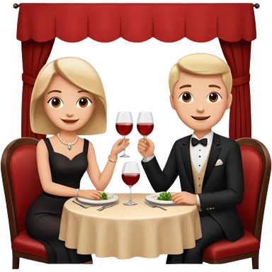 Couple with blonde hair wearing black eating chick filet hearts and outer space in the background. emoji
