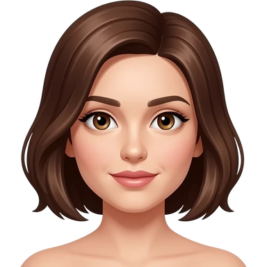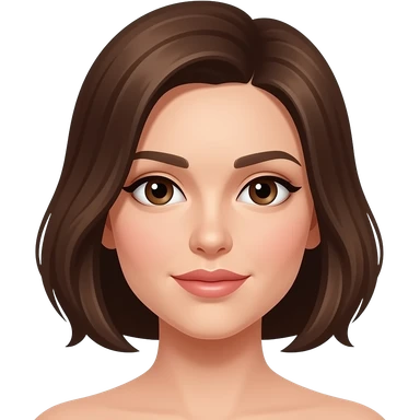 femme cheveux chatains au carré, raie sur le côté droit, yeux marrons, lèvres fines emoji