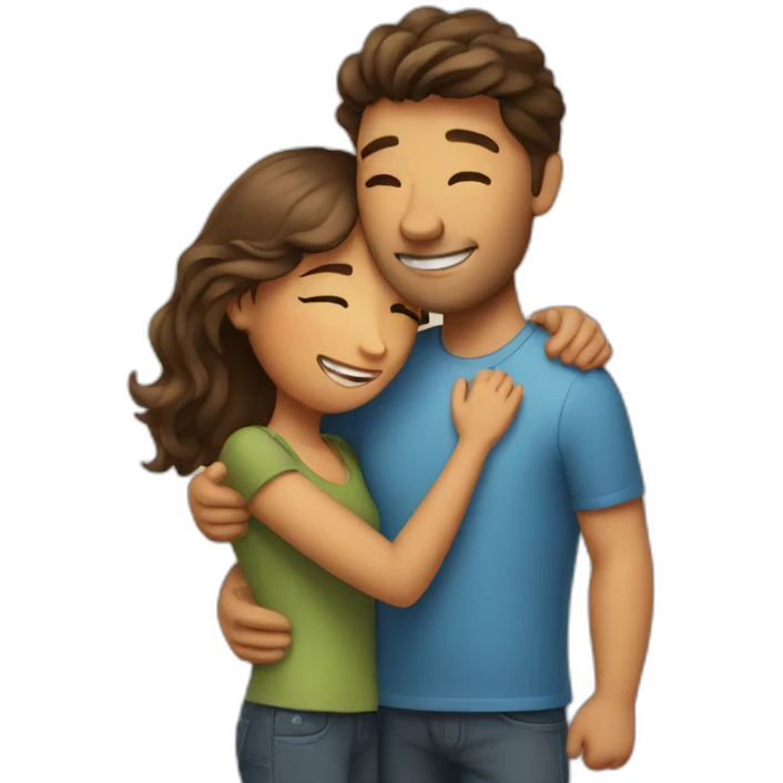 couple hugging each other. The man has short brown hair and blue eyes. The woman has long brown hair and blue eyes emoji