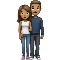 couple hugging each other. The man has short brown hair and blue eyes. The woman has long brown hair and blue eyes emoji