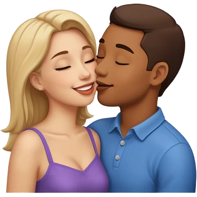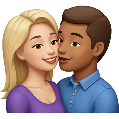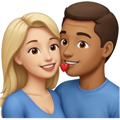 Couple kissing each other, girl is pale with red long hair and man has no hair and is white brown eyebrows emoji